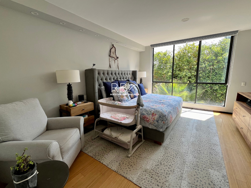 En el nivel superior, tres recámaras, la principal con vista al jardín y vestidor, las otras dos con baño y acceso a balcón, además de un estudio ideal para home office.